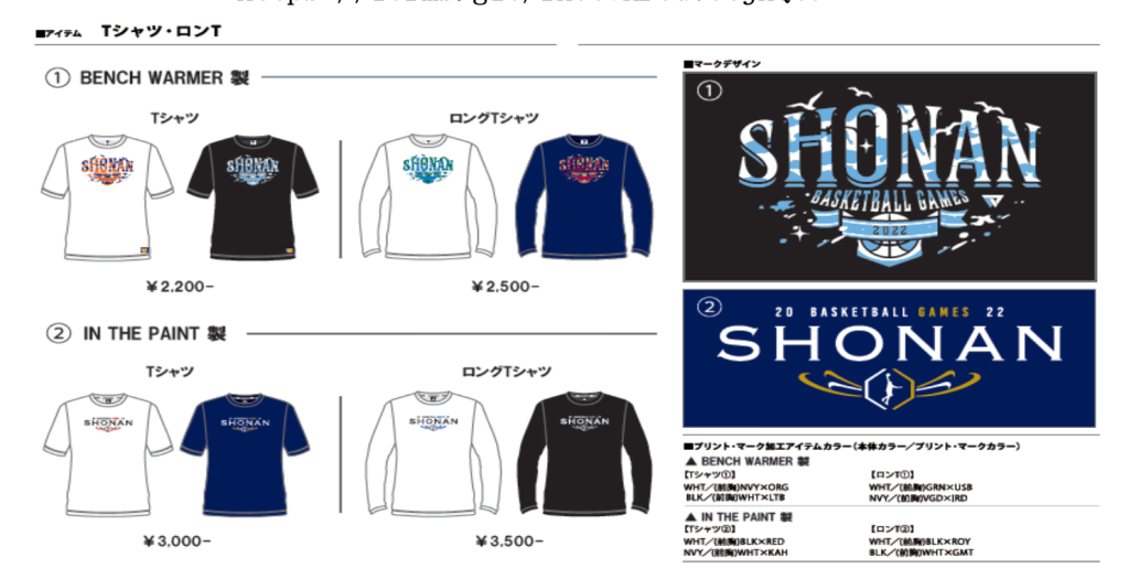 ※金額、サイズ、色、大会までのお届けできる購入期限などは申込書の中で確認してください。